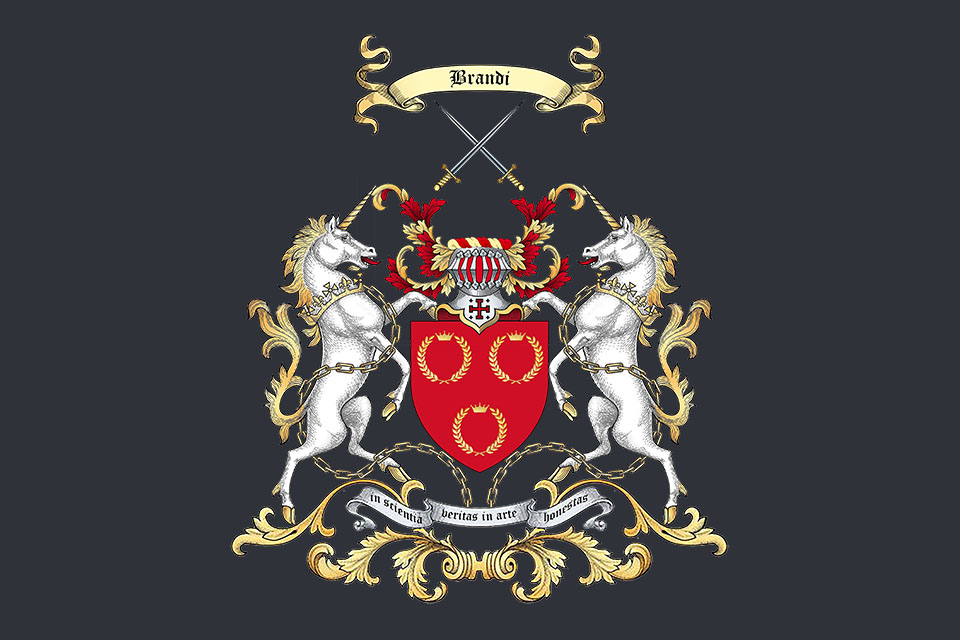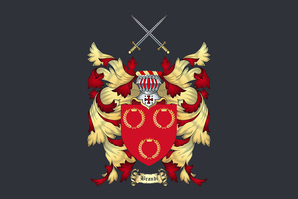In the Brandi's coat of arms two elements, the laurel branchs and the crown, repeatead three times, furnished by a whole of the Gules shield. The symbols adopted into the armory are been used since the Antiquity, but heraldry itself began from the XIth century.